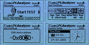 The PLAnalyzer is based on the JControl/PLUI, with a specific analyzing software written in JAVA. Setting all system parameters, e.g. master- or slave-mode, network- and house-address, device id, analyzing method, test interval etc. is done by a comfortable graphical user interface. A typical test case could be the simulation of several home appliances, connected to a power-line network. Thus, every device is represented by a PLAnalyzer module.